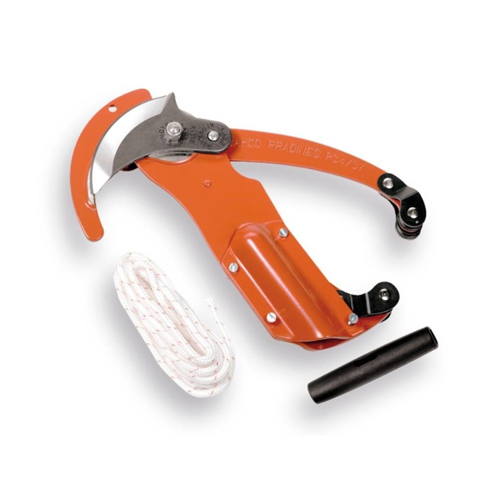 Rupsenschaar met drievoudig katrolhandeling (hefboom werking) ter vergroting van snoeikracht.