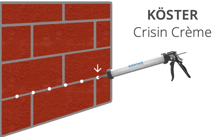 Oplosmiddelvrij Hars / Silan injectiecrème tegen optrekkend vocht, werkzaam tot een vochtigheidspercentage in de muur van 95% ! Köster Crisin zit verpakt in kitpatronen en is eenvoudige te verwerken middels gaten boren in de muren het verwerken van de crème met een kitpistool. Economisch in het verbruik en Köster Crisin bevat geen oplosmiddelen! Vochtige muren weer droog met Crisin. Zie voor verdere info onze technische documentatie: Prijs per kitpatroon € 17,50 – Verpakking 310 ml – Verbruik 140-510ml/m1