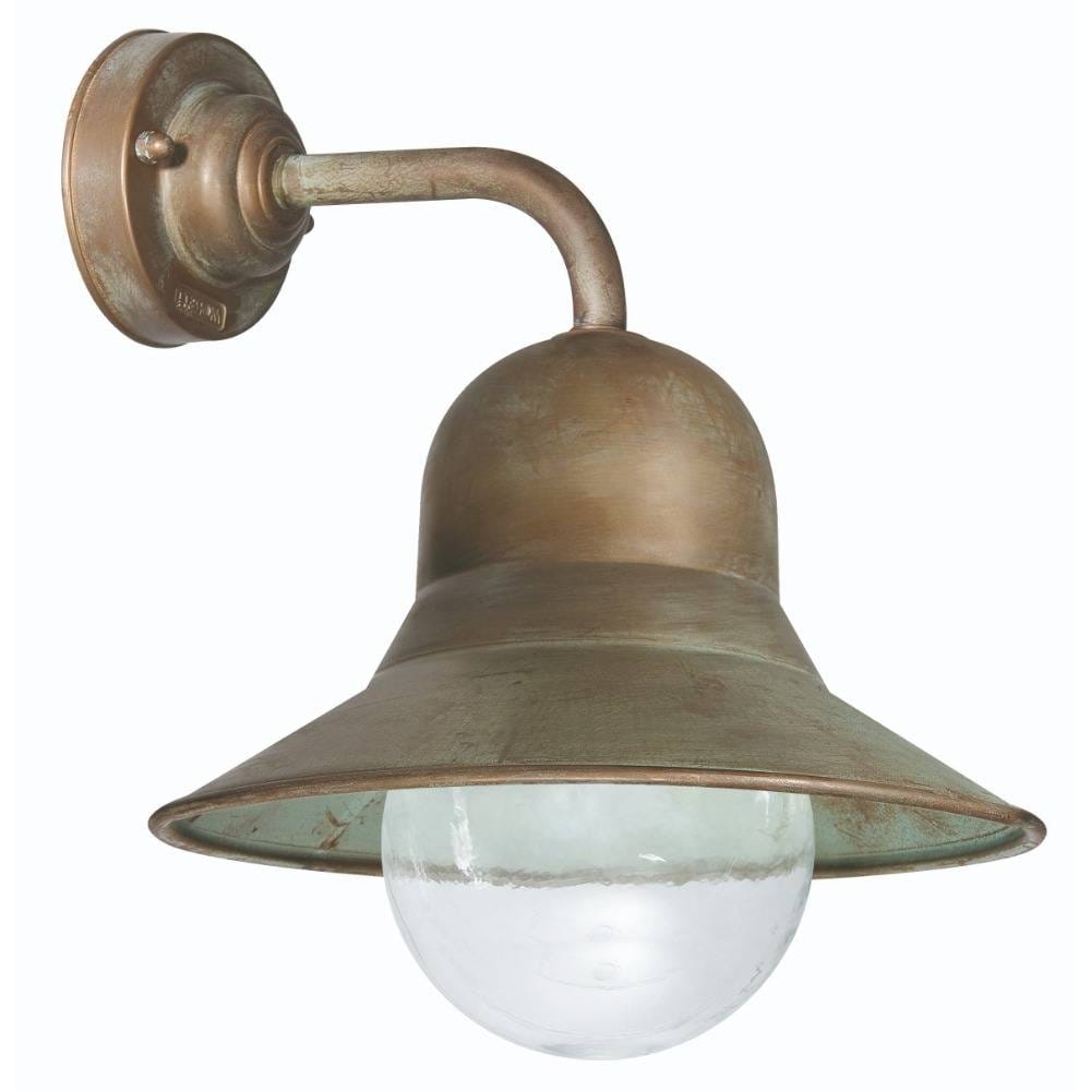 Maritiem. gevel. arm kort. verkoperd messing. E27. kelk