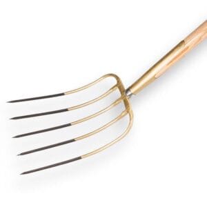 Natuurlijk ook Mestvork, kleur brons, varianten met 4 & 6 tanden.