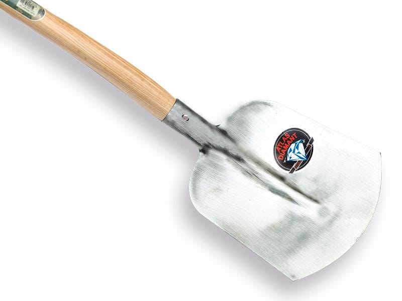 Atlas schopstelen worden gemaakt van Essen hout, worden in kokend water gebogen (deze zijn extra sterk omdat de nerf met de bocht meeloopt), zijn spiegelglad gewaxt (voorkomt blaren), klimaatkamer gedroogd (steel krimpt niet en gereedschap blijft vast) en voorzien van een doorgestoken Hilt zonder nietje en zonder lijm.